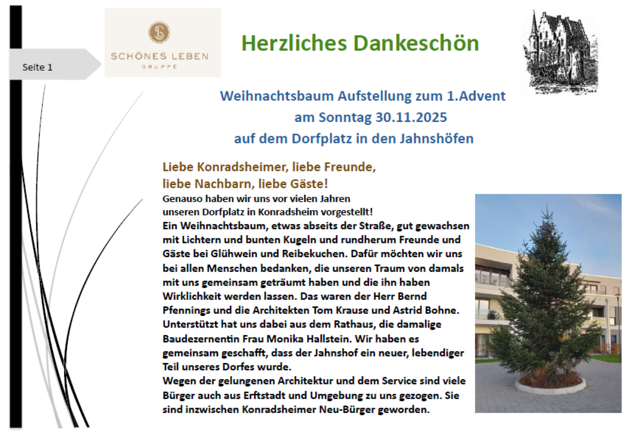 Weihnachtdsbaum Aufstellung zum 1. Advent auf dem Dorfplatz in den Jahnshöfen
